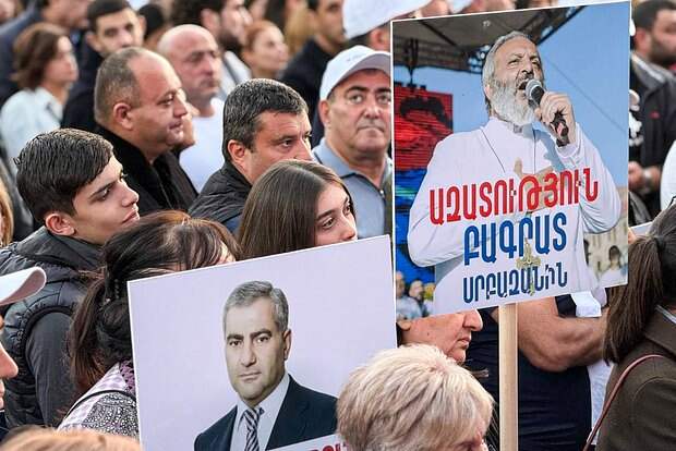 Внизу же сейчас нарастает недовольство установлению диктатуры, что проявилось в субботней массовой демонстрации в Ереване, на которую вышли сторонники арестованного предпринимателя Самвела Карапетяна. Тысячи людей промаршировали к зданию СНБ с требованием его освобождения и прекращения репрессий.