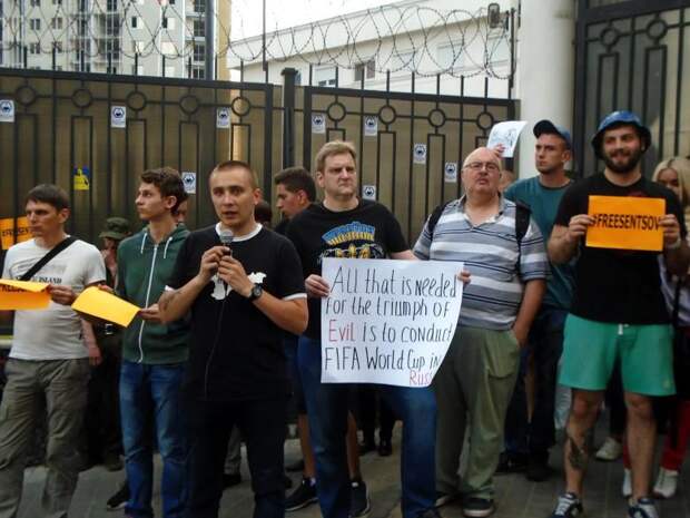 В назначенный час пикета соратник «жидобандеровца» по палате (зачеркнуто) баррикадам, такой же майдановец со стажем, но «кацапобандеровец» Михаил Голубев написал в соцсетях: